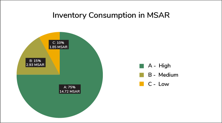 PiLog would perform the material criticality or Inventory Analysis in order to determine the criticality, consumption value, consumption rate, stock value, lead time, price of single unit and frequency with which it is used by the plants during the production process.